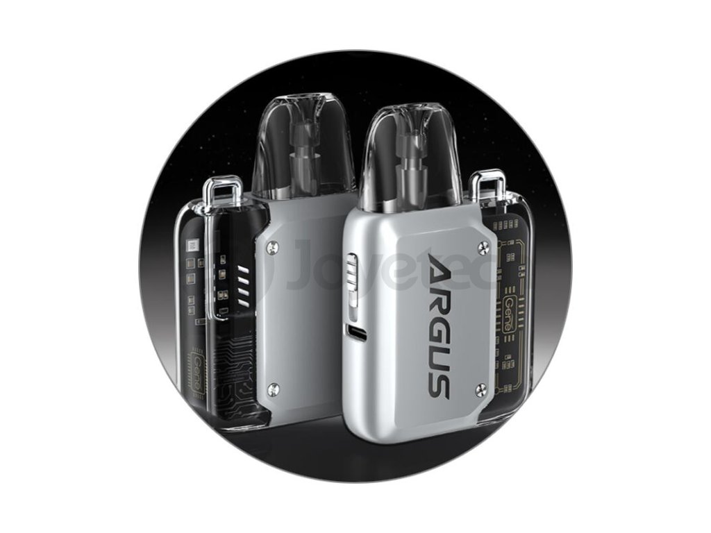 V základním balení se nachází dvě cartridge ze série Argus Pod, které nabídnou integrované žhavící tělísko pro vynikající podání chuti a rychlou odezvu při žhavení. Cartridge nabídnou hned čtyři spodní otvory pro přísun vzduchu pro ještě prokreslenější chuť. Díky kompatibilitě s cartridgemi Argus Pod je budete moci používat také v dalších modelech z rodiny pod systémů Argus, jako například Argus Pod Kit, nebo Argus Z Pod Kit.