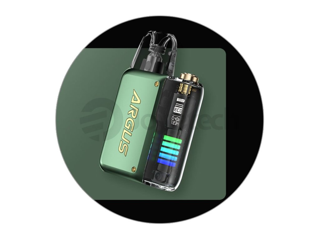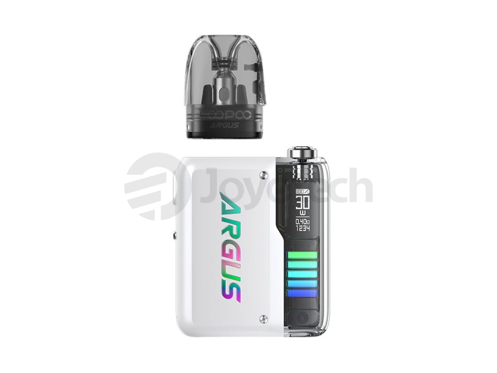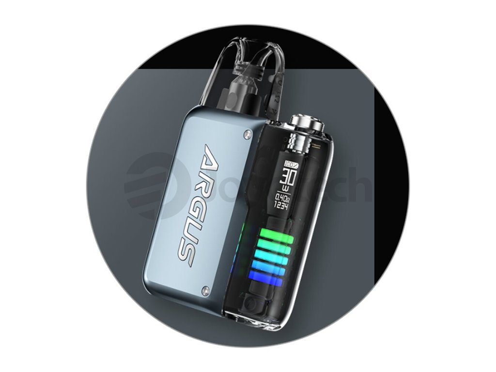 Krásně zpracované tělo zařízení ukrývá přehledný OLED displej a prvotřídní elektroniku s podporou výkonu až do 30W. Jako bonus na vás potom čekají hned dva režimy výstupu. Režim SHIFT umožňuje použití jedné ze tří přednastavených intenzit výkonu, režim POWER nabídne tradiční možnost regulace vlastního výstupního výkonu. Pro účely použití vyššího výstupního výkonu osadil výrobce model novým typem cartridge VooPoo Argus Pod Top Fill s nízkým odporem 0.4ohm. Cartridge ocení příznivci RDL vapingu.
