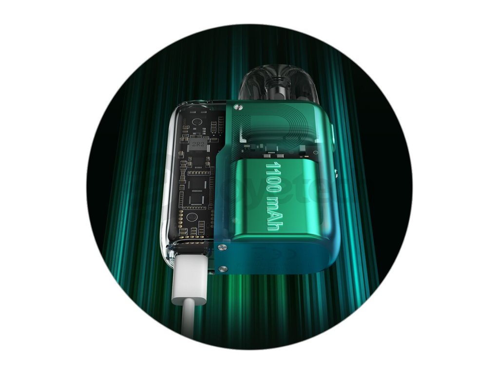 Kapesní tělo ukrývá integrovanou baterii s ohromující kapacitou 1100mAh, která se postará o nerušený požitek z vapování po celý den. Nesmí chybět ani podpora rychlého nabíjení s parametry 5V / 2A pro co nejrychlejší dobití vaší baterie kdykoliv bude potřeba.
