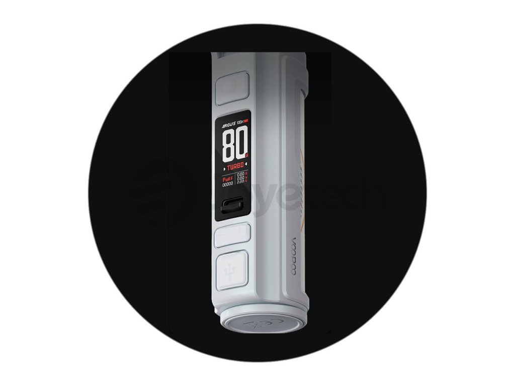 Obrovský výstupní výkon až 80W. Přesně tím se může pyšnit druhá generace modelu Argus Pod. Výkon je samozřejmě plně regulovatelný, lze ho upravovat v rozpětí 5 - 80 W. Díky tomuto výstupnímu výkonu dokáže uspokojit i nejnáročnější vyznavače cloudchasingu a přímého potahování do plic.