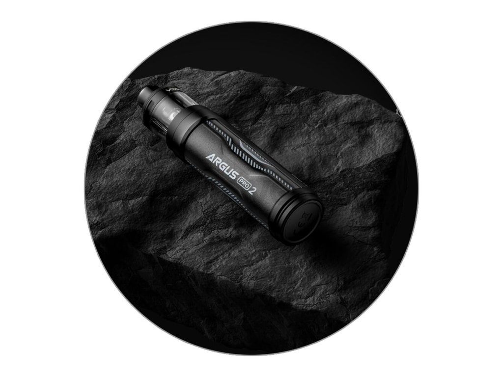 Maximální důraz na ergonomii, robustní konstrukce a cit pro outdoorovou estetiku. To je ve zkratce Argus Pro 2. Ergonomicky zpracované tělo disponuje rozměry 127.4 x 35.5 x 29.8 mm. Celé tělo je vyrobeno z kvalitní zinkové slitiny, kterou doprovází kožený potah s prošíváním v zadní části. Zajímavým doplňkem je potom zarovnaná protiskluzová podstava pro pohodlné stání na stole a poutko pro zavěšení vlastní šňůrky nebo klíčenky ve vrchní části.