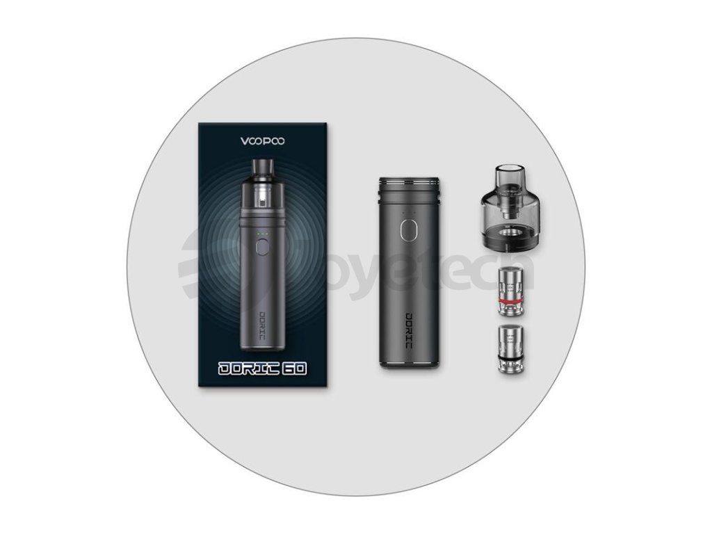 Výrobce VooPoo uvádí na trh také většího a výkonnějšího sourozence modelu Doric 20. Jedná se o e-cigaretu VooPoo Doric 60 Pod Kit. Čeká na vás větší kapacita baterie, kvalitní kovové zpracování a vysoký výkon. E-cigareta Doric 60 nabídne jednoduchou obsluhu a několik užitečných funkcí, z nichž nejzajímavější je podpora tělísek z platformy PnP. E-cigareta disponuje délkou 113,45 mm a průměrem 26,55 mm. Nabídne tradiční trubkovou konstrukci pro pohodlné užívání a držení v ruce. Uvnitř těla potom najdete integrovanou baterii s kapacitou 2500 mAh, která je určena pro využití také s vyššími výstupními výkony. E-cigareta pracuje s výkonem v rozsahu 5 - 60 W, který se nastavuje automaticky dle zvoleného tělíska. Během potahování si můžete zvýšit intenzitu potahu přepínáním jednoho ze tří režimů výstupu pomocí tlačítka.