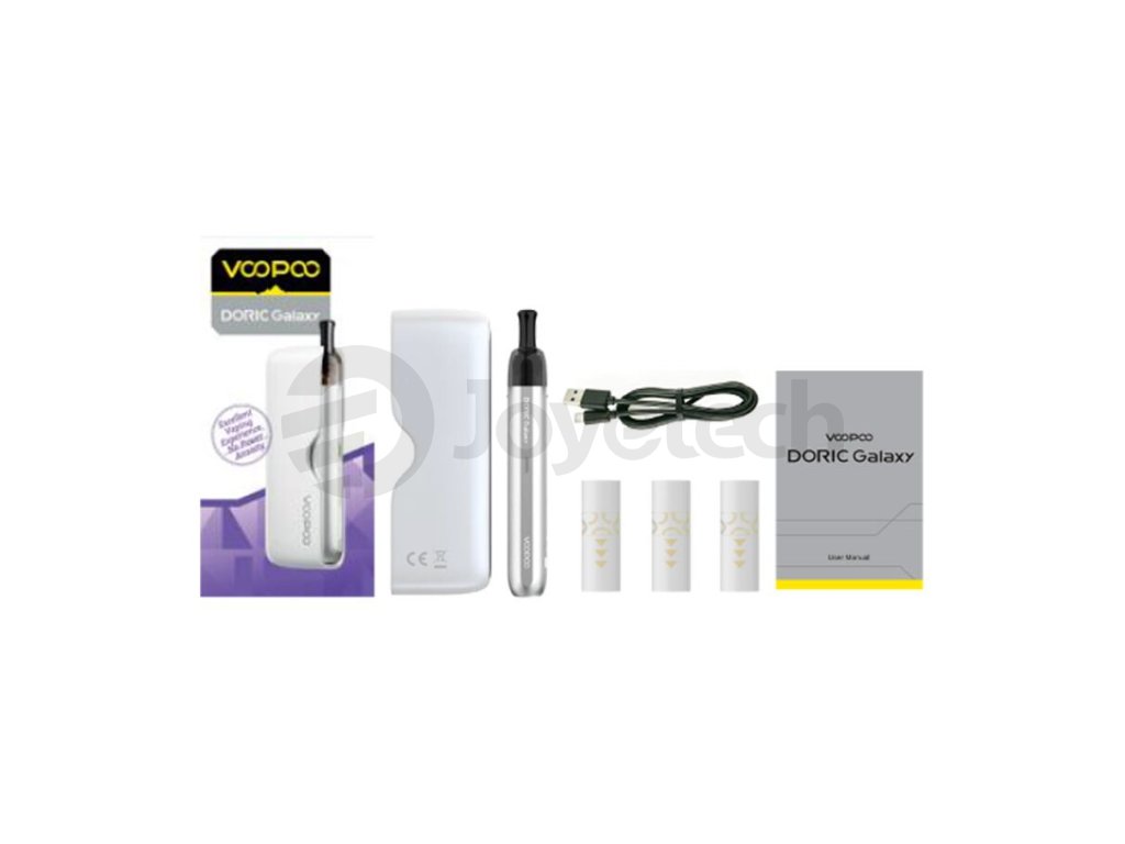 VooPoo Doric Galaxy PCC je kompletní souprava kompaktní e-cigarety typu pen-style a dobíjecího pouzdra s vlastní přídavnou baterií. V těle e-cigarety se nachází tradiční integrovaná baterie s kapacitou 500 mAh, k té se přidává také integrovaná baterie uvnitř pouzdra s kapacitou 1800 mAh. Po spojení obou těchto součástí získáte elegantní a moderní e-cigaretu s obrovskou výdrží a jedinečným designem.