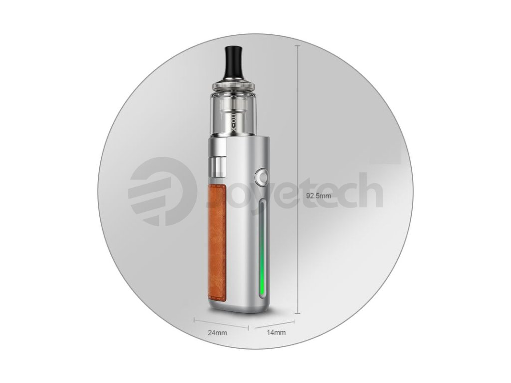 Materiál: zinková slitina + kůže + silikon (tělo e-cigarety); nerezová ocel + PCTG (cartridge)