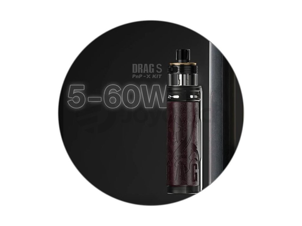 Legendární modely e-cigaret VooPoo Drag S a Drag X se vrací v nové podobě s ještě stylovějším designem a ještě ergonomičtější konstrukcí. VooPoo Drag S PnP-X Pod Kit je vylepšenou verzí původního modelu Drag S s celou řadou užitečných prvků pro každodenní využití. Nabídne krásné designové zpracování a bytelnou kovovou konstrukci, kterou doplňuje stylový kožený panel v zadní části s motivem série Drag Knight. Rozměry celé e-cigarety činí 119,5 x 33 x 28 mm. Skvěle padne do ruky a pohodlně se užívá. Uvnitř těla se nachází integrovaná baterie s kapacitou 2500 mAh, která se postará o hladký chod a zajistí také vysoký výstupní výkon. Ten lze regulovat v rozpětí 5 - 60 W přímo na předním ovládacím panelu.