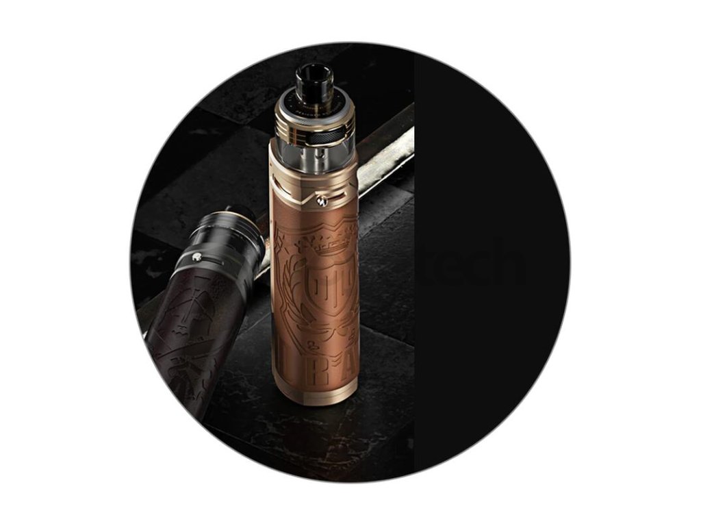 Nová verze populární e-cigarety VooPoo Drag S Pod Kit přichází s ještě ergonomičtějším zpracováním a s ještě stylovějším designem. Kovové tělo zařízení je doplněno o stylový kožený potah s motivem série v zadní části. Rozměry e-cigarety činí jen 119,5 x 33 x 28 mm. Díky zaoblené zadní části se perfektně drží v ruce a působí nesmírně robustním a bytelným dojmem, nechybí jí však také punc elegance.