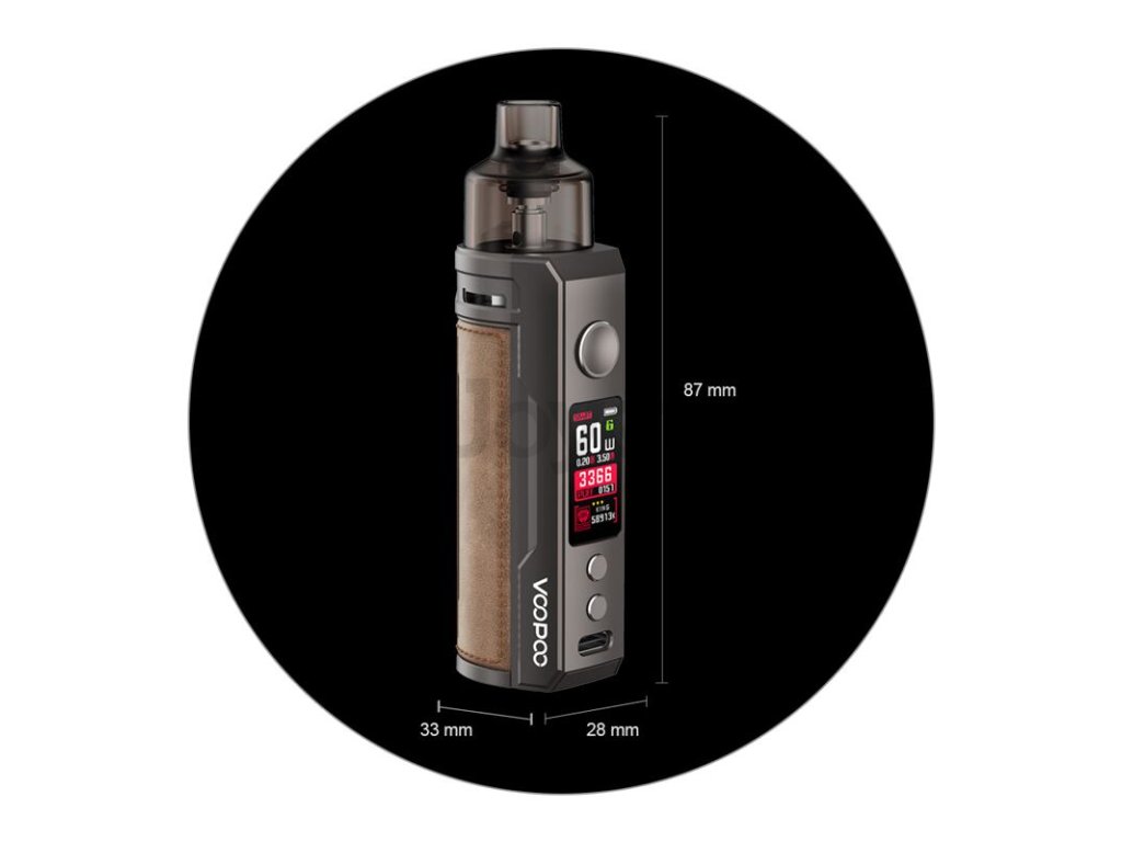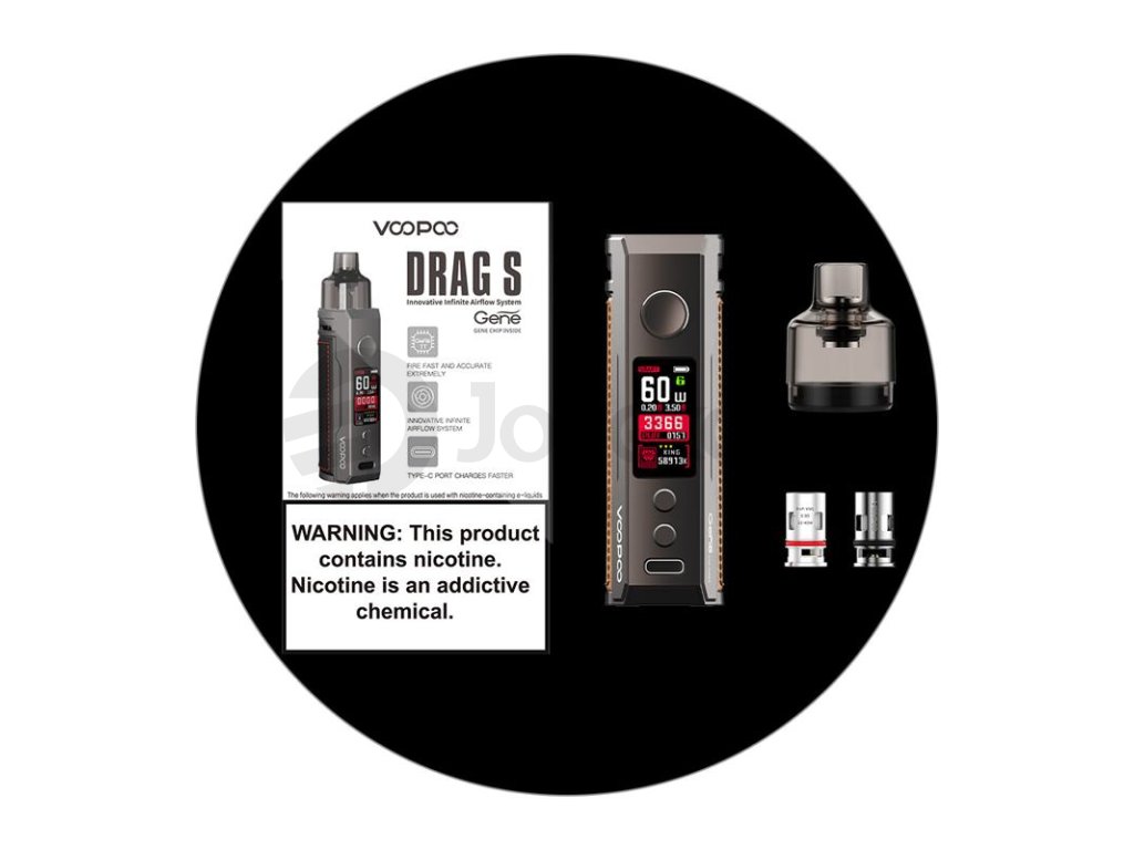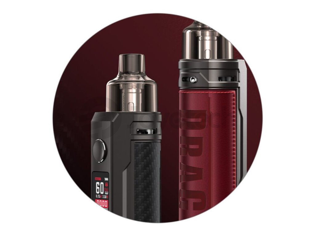VooPoo Drag S Pod Kit je nová elektronická cigareta výrobce VooPoo. Tentokrát se zaměřuje na všechny typy vaperů a přináší řadu jedinečných funkcí pro snadné používání a jednoduchou obsluhu. Drag S Pod Kit přichází s krásným designem. Celé tělo je vyrobeno z kombinace zinkové slitiny a kůže, která se nachází na zadním panelu. K dispozici je také celá řada barevných provedení. Rozměry zařízení činí jen 87 x 33 x 28 mm, skvěle padne do každé ruky a pohodlně se také přenáší. V jádru zařízení se nachází prvotřídní čip GENE.TT, který nabídne okamžitý náběh žhavení, řadu bezpečnostních prvků, přehledné uživatelské rozhraní a možnost regulace výstupního výkonu v rozmezí 5 - 60 W. Díky čipu se můžete těšit také na dvě varianty potahu - automatické spínání potažením z náustku, nebo na manuální spínání pomocí tlačítka. Výběr je čistě na vás.