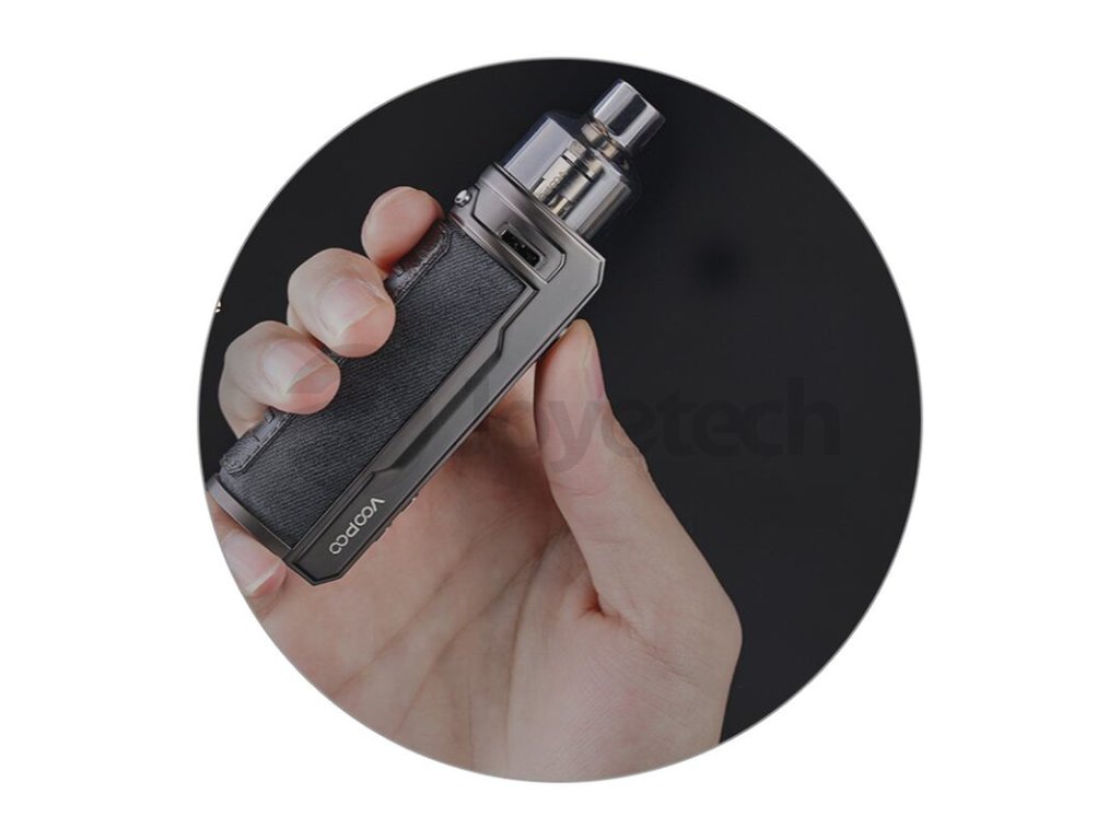 Celé tělo e-cigarety VooPoo Drag S Pod Kit nabídne exkluzivní dílenské zpracování. Konstrukce je vyrobena z kvalitní zinkové slitiny, kterou doplňuje plastová cartridge se silnými magnety ve vrchní části. Celkový vzhled potom dotváří zadní panel pokrytý kůží. Nabídne také ergonomickou konstrukci a kompaktní rozměry pro snadné přenášení a pohodlné používání.