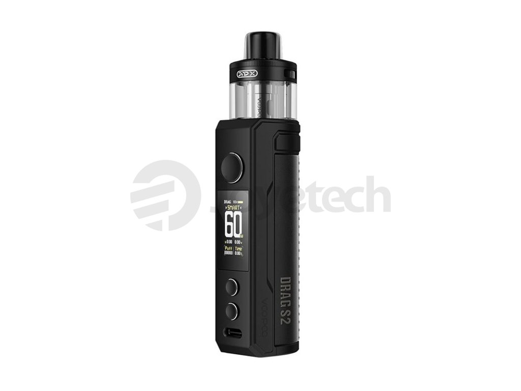 Druhá generace populárních modelů e-cigaret Voopoo Drag S a Drag X přináší celou řadu vylepšení v čele s upgradovaným čipsetem, přepracovaným rozhraním, podporou většího množství režimů, větším objemem a novou platformou PnP-X pro co nejlepší výsledky při vapování. Model VooPoo Drag S2 Pod Kit se pyšní krásně zpracovanou konstrukcí a zabudovanou integrovanou baterií s kapacitou 2500mAh v těle. Konstrukce je vyrobena z kombinace zinkové slitiny a kůže, samozřejmostí jsou potom praktické rozměry a zaoblené hrany v zadní části pro komfortní stisk v dlani. Integrovaná baterie si dokáže poradit s ohromujícím výkonem až 60 W. Baterii si navíc budete moci kdykoliv dobít prostřednictvím moderního rozhraní USB-C s parametry 5V / 2A.