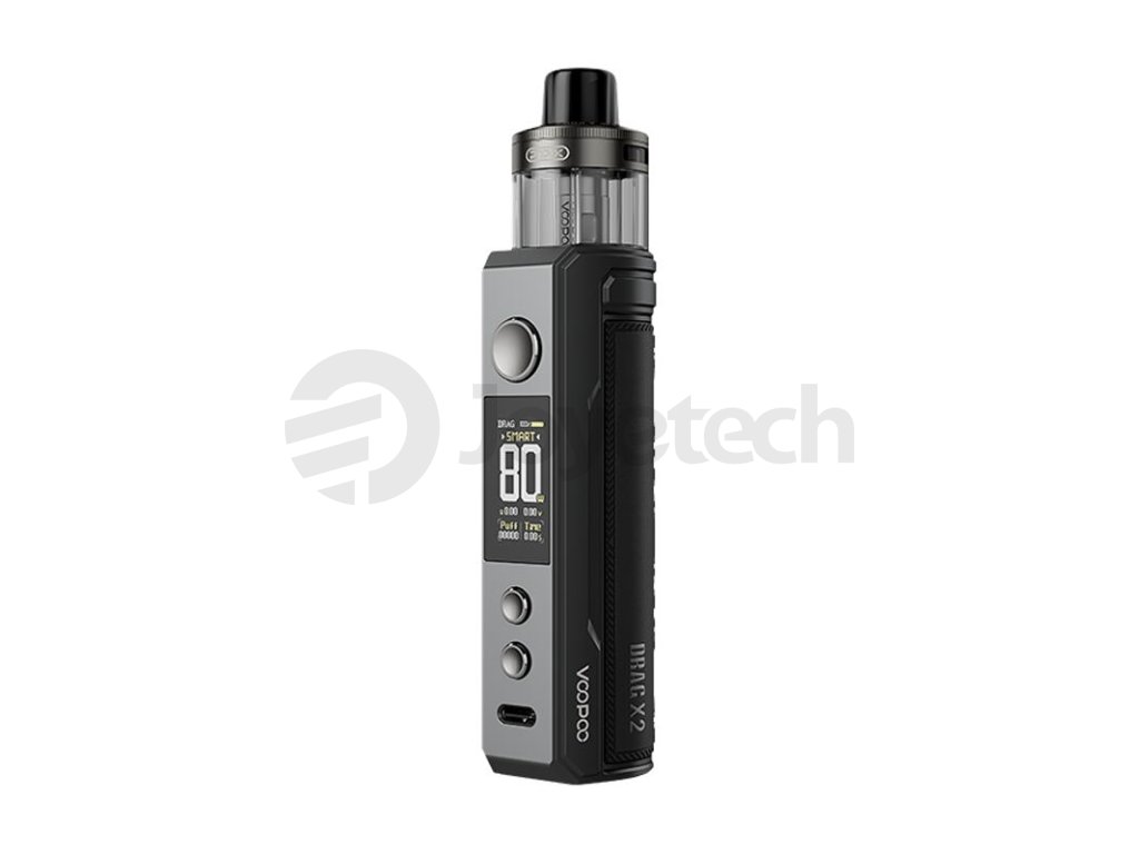 Druhá generace populárních modelů e-cigaret Voopoo Drag S a Drag X přináší celou řadu vylepšení v čele s upgradovaným čipsetem, přepracovaným rozhraním, podporou většího množství režimů, větším objemem a novou platformou PnP-X pro co nejlepší výsledky při vapování. Verze VooPoo Drag X2 Pod Kit nabídne elegantní a moderně zpracované tělo ze zinkové slitiny a kůže. Samozřejmostí jsou potom opět praktické rozměry a ergonomicky zaoblené hrany v zadní části pro komfortní stisk v dlani. Tělo zařízení ukrývá slot pro vlastní baterii typu 18650. Díky pohonu na externí baterii si dokáže model Drag X2 poradit s výstupním výkonem až 80 W. Externí baterii potom můžete pohodlně dobíjet také přímo v těle e-cigarety díky USB-C portu s podporou 2A nabíjení v přední části.