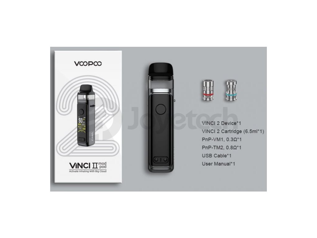 Není určeno pro náplně obsahující nikotin! VOOPOO představuje druhou verzi oblíbeného gripu VINCI, který si získal mnoho fanoušků po celém světě. Ergonomické tělo baterie ze slitiny zinku vážící pouhých 115g s designovým zadním panelem obsahuje vestavěnou baterii o kapacitě 1500mAh. Nový čip Gene Al 2.0 nabízí režim Smart, RBA a Power. Tvorbu páry zajišťuje nejen spínací tlačítko, ale i systém automatického žhavení - stačí pouze potáhnout z náustku. Regulace přívodu vzduchu pro nastavení optimální kouřivosti se nachází na boční straně těla baterie. Přehledný 1,08 palcovým TFT displej umístěný na přední straně gripu umožňuje jednoduché nastavení hodnot a zobrazuje všechny potřebné informace. Cartridge s vyměnitelnou žhavící hlavou a jednoduchým bočním plněním pojme až 6,5ml liquidu. V základním balení budete mít na výběr dvě žhavící hlavy, a to masivního výrobce páry PnP - VM1 o odporu 0,3ohm a žhavicí hlavu PnP - TM2 o odporu 0,8ohm.