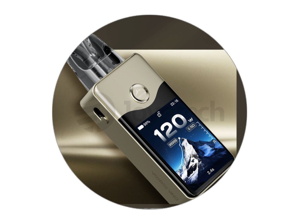 VooPoo Vinci E120 je luxusně zpracovaný pod mod s dominantním 2,4” TFT displejem v přední části a s luxusně zpracovanou hliníkovou konstrukcí těla. Díky pečlivě navrženým rozměrům perfektně padne do dlaně a díky bohaté nabídce barevných variací dokáže oslovit naprosto každého milovníka vapingu.