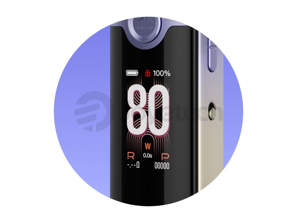 Displej je jednoznačnou dominantou a chloubou této elektronické cigarety, neboť disponuje úhlopříčkou 1,47 palce, jemným rozlišením a jasnými barvami. V aktuálním čase zobrazuje výkon, odpor, stav baterie, délku posledního potahu a celkový počet potahů. Všechny potřebné informace tak máte neustále na očích.