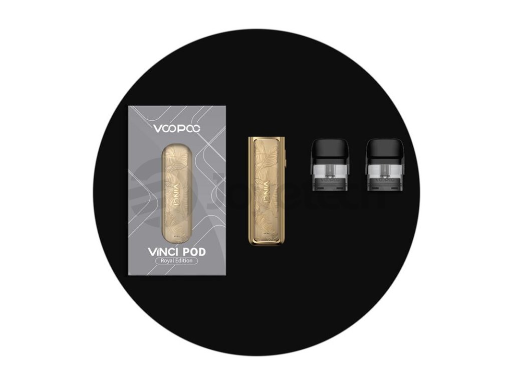 VooPoo Vinci Pod Kit Royal Edition je luxusní verzí e-cigarety Vinci Pod, která je určena náročným uživatelům, nebo zkrátka všem, kdo si potrpí na prémiový a stylový design. K dostání je v šesti luxusních zpracováních, nabídne kompaktní a praktické rozměry, kvalitní kovové tělo a do detailu vybroušený motiv na předním panelu. S touto e-cigaretou budete zaručeně všude na očích.