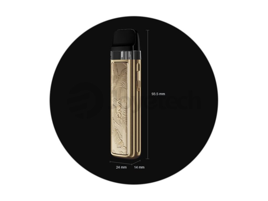 VooPoo Vinci Pod Kit Royal Edition je luxusní edicí populární e-cigarety Vinci Pod. Díky specifickému výrobnímu procesu a luxusnímu zpracování se jedná o e-cigaretu pro náročné uživatele, nebo zkrátka pro ty, co si potrpí na prémiový design produktu. Designéři ze společnosti VooPoo zachytili při návrhu doslova každý malý detail a výsledný design přivedli k dokonalosti. Samotná výroba se skládá ze dvanácti výrobních procesů a 68 navazujících kroků. Povrchová úprava a barevná zpracování jsou tak ukázkou opravdového mistrovství. E-cigareta nabídne všechny výhody, které znáte již z původní verze Vinci Pod. Nesmí chybět kapesní rozměry 93,5 x 24 x 14 mm v čele se skvělou ergonomií. Uvnitř těla se nachází integrovaná baterie se solidní kapacitou 800 mAh pro dlouhé hodiny nerušeného vapování. V případě potřeby stačí kdykoliv připojit USB-C kabel a baterii můžete opětovně pohodlně a rychle dobít.