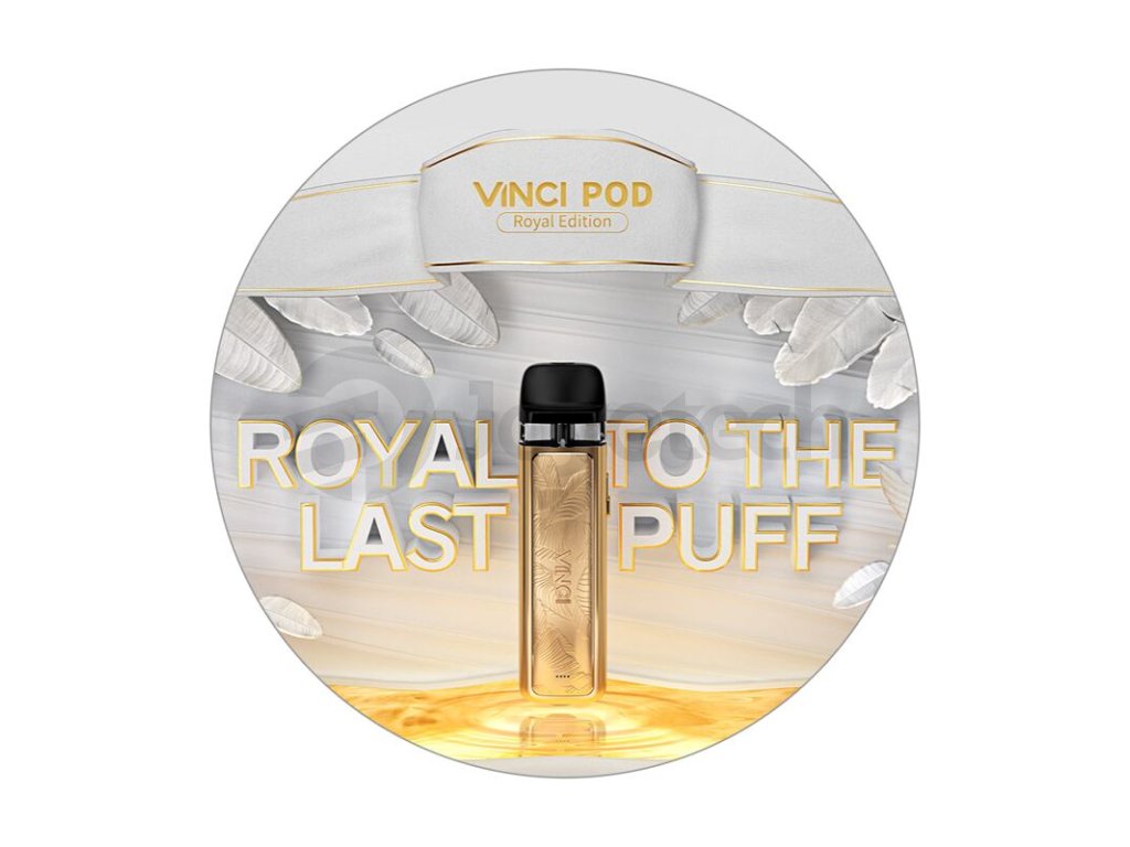 Verze Vinci Pod Royal Edition je kompatibilní s celou rodinou cartridgí Vinci Pod. Nově přidává dvě cartridge s objemem 2 ml a integrovanými mesh tělísky pro ještě lepší zachycení chuti a rychlejší náběh žhavení. Odpor první cartridge činí 0,8 ohm, odpor druhé cartridge je potom 1,2 ohm. Obě tyto nové cartridge najdete v základním balení. Novinkou je také přítomnost rychlého systému vrchního plnění, kdy stačí jen sejmout náustek a během pár vteřin opětovně doplnit e-liquid.