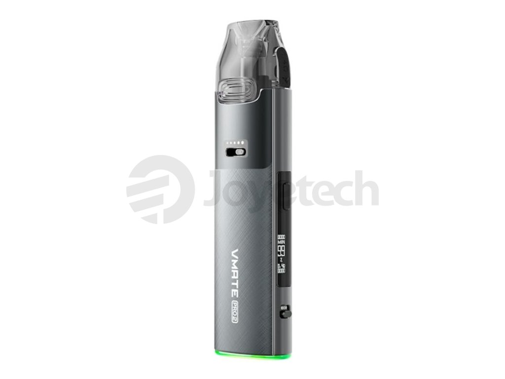Prémiové zpracování zahrnuje CNC obráběný rám s matnou povrchovou úpravou, 3D laserové detaily a stylové cirkulární LED podsvícení. Vmate Pro 2 podporuje rychlé nabíjení přes USB-C, přičemž plné dobití zvládne za pouhých 40 minut. Kromě toho nabízí přehledné zobrazení stavu baterie, odporu, výkonu, počtu potahů a délky vapování. Kompatibilita s cartridgemi Vmate 0.4Ω a 0.7Ω zaručuje univerzální použití. K dispozici je v 7 moderních barevných variantách.