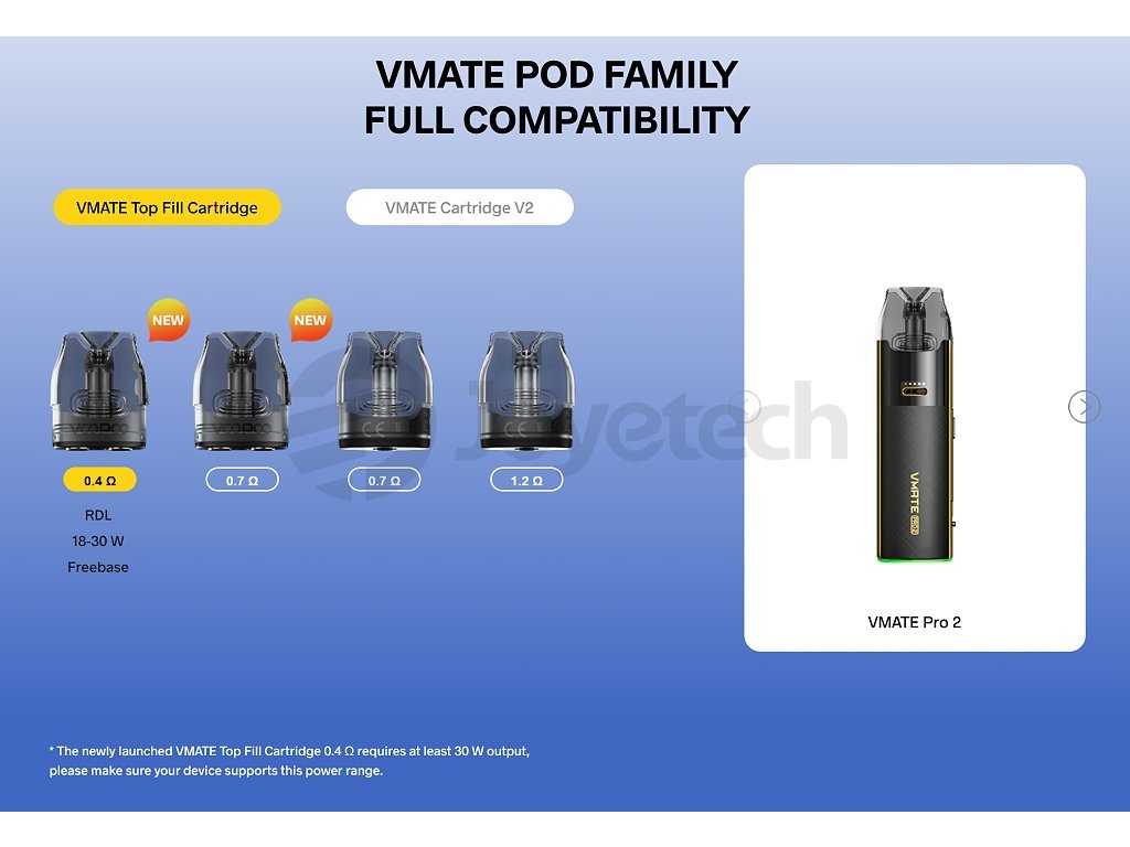 Vmate cartridgeKompatibilní s celou platformou VooPoo Vmate cartridgí včetně starších V2 i nových V3 Top Fill cartridgí. V balení najdete dvě nové cartridge s objemem 2ml - jedna 0,4Ω pro RDL a druhá 0,7Ω pro MTL vapování s praktickým bočním plněním. |