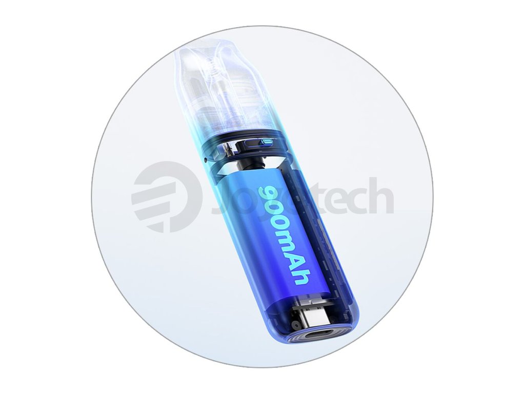 Uvnitř e-cigarety se nachází integrovaná baterie s obrovskou kapacitou 900mAh pro hladký chod zařízení, intenzivní používání a dlouhou výdrž. Integrovaná baterie zajistí také stabilní výkon při odpařování a dodá vždy jen ty nejlepší výsledky. Samozřejmostí je podpora moderního nabíjení USB-C, dobíjecí port je umístěn ve spodní části.