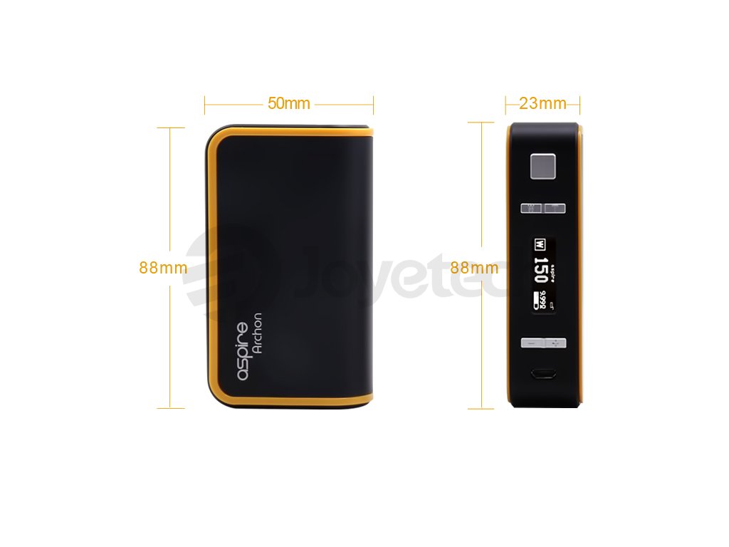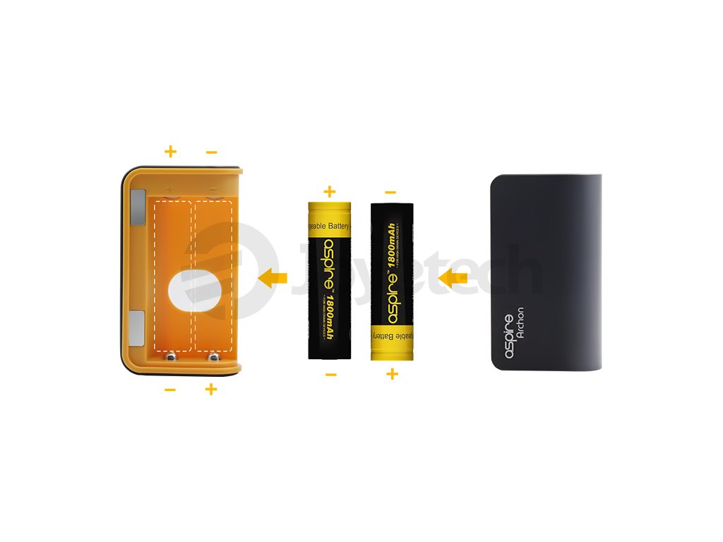 Aspire Archon je nový výkonný 150W mod na dvě 18650 baterie. Umožňuje přizpůsobit si uvítací logo pomocí několika kliků přímo na módu. Má dětskou ochranu a upgradovatelný firmware. Umožňuje přepnutí mezi VW a TC režimem pomocí jednoho tlačítka. Kryt baterií je uchycen magnety. Vzhledově atraktivní barevné kombinace, ergonomický tvar.