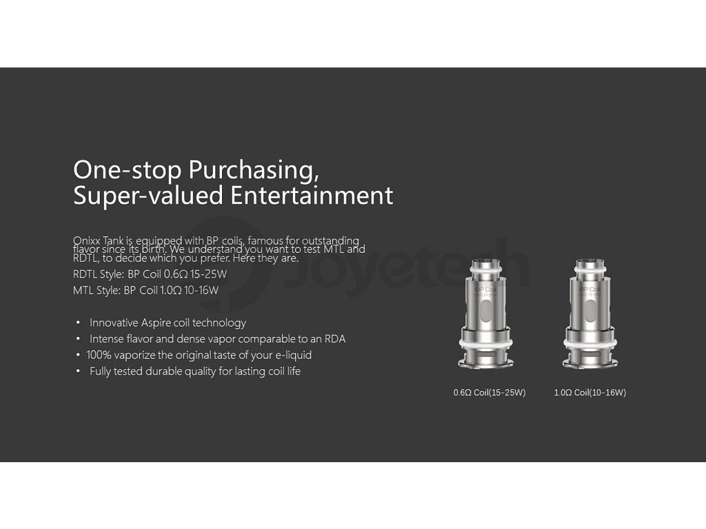Aspire je jeden z velkých výrobců, který od roku 2013 posouvá dopředu zařízení, ale i způsob vapování. Aspire první představil takzvané BVC hlavy. Aspire se zaměřoval na tyl kouření pusa-plíce, ale jako první přišel s nízkoodporovým tankem. Aspire dále pokračuje na pevných základech. Aspire má pro začátečníky skvělé sady, pokročilí si užijí novou řadu nízkoodporových tanků