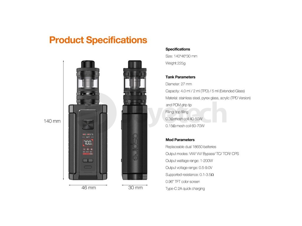 Aspire Vrod 200 - Grip Kit - 200W (Charcoal Black)
