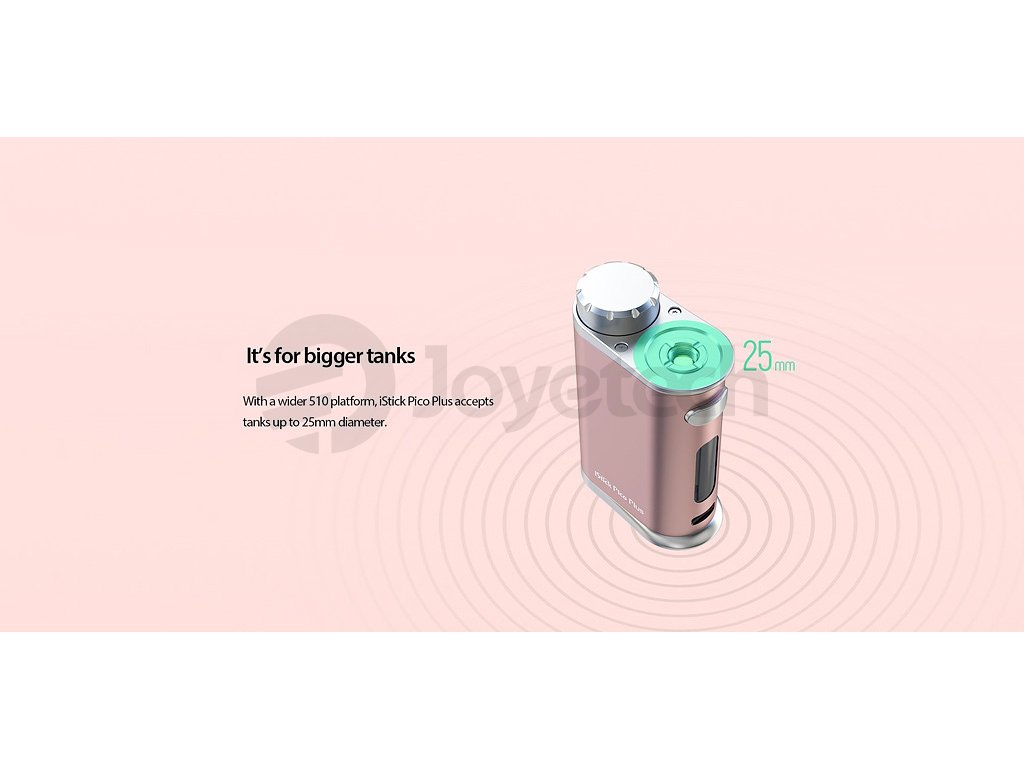 Nástupce oblíbeného iStick Pico, tentokrát s přívlastkem Plus. Vysoký nastavitelný výkon až 75W, na baterie typu 18650, rychlé USB-C nabíjení, OLED displej, závit 510. Baterie nejsou součástí balení. Barevné provedení Black.