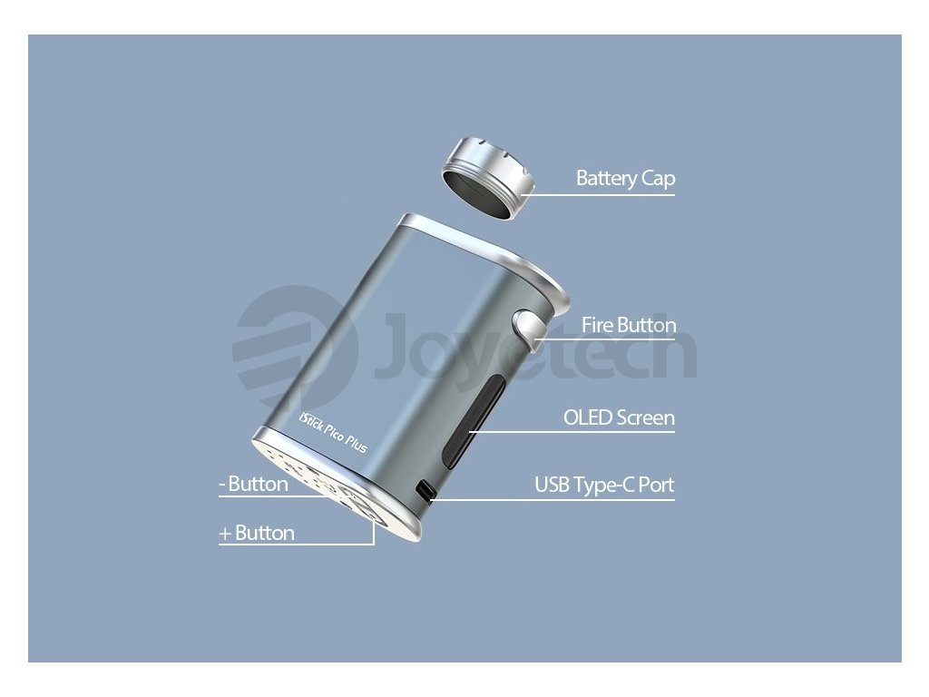 Nástupce oblíbeného iStick Pico, tentokrát s přívlastkem Plus. Vysoký nastavitelný výkon až 75W, na baterie typu 18650, rychlé USB-C nabíjení, OLED displej, závit 510. Baterie nejsou součástí balení. Barevné provedení Silver.