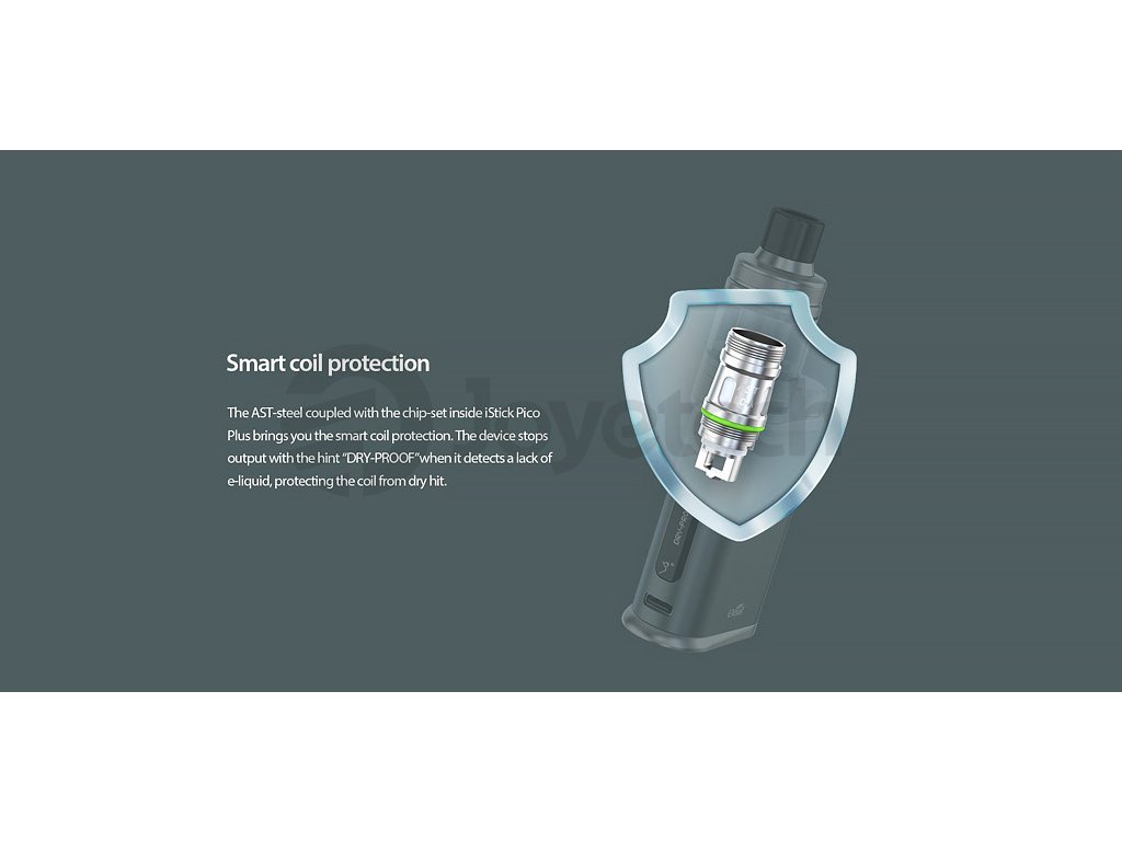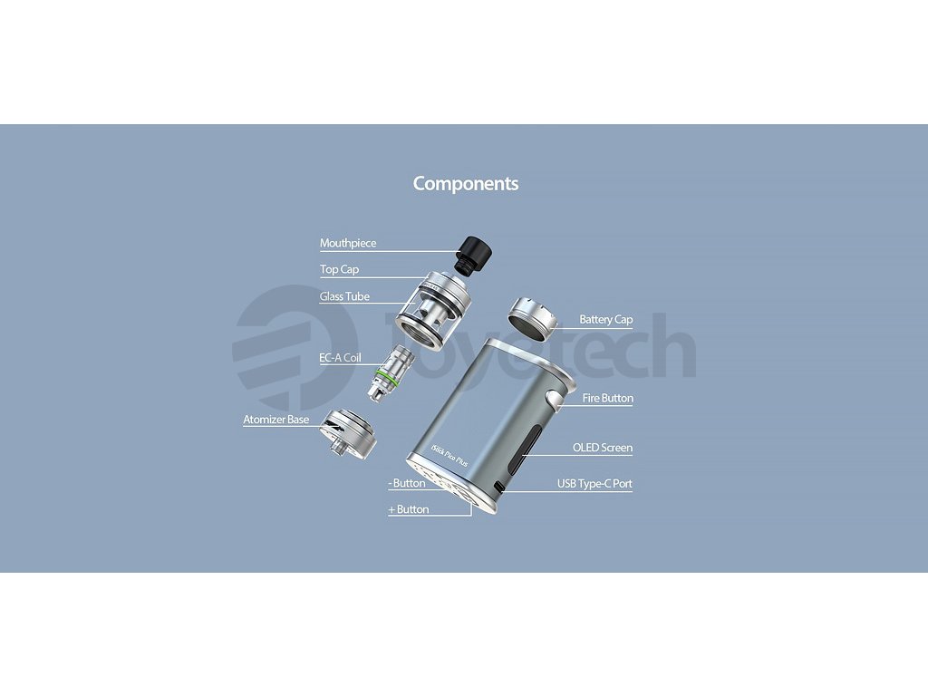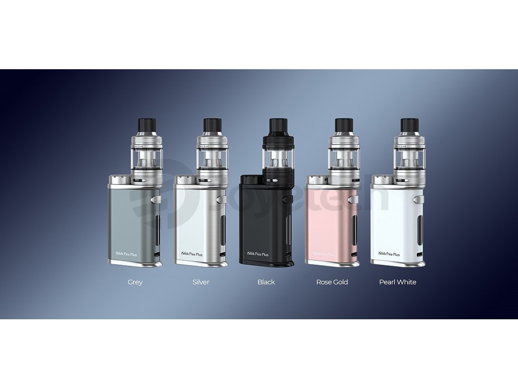 Nástupce oblíbeného iStick Pico, tentokrát s přívlastkem Plus. Vysoký nastavitelný výkon až 75W, na baterie typu 18650, rychlé USB-C nabíjení, OLED displej, Grip je osazen inovativním Clearomizérem Eleaf mělo 4S s kapacitou 4ml, horním plněním, plynulou regulaci Airflow. Zcela nové žhavící hlavy Eleaf EC-A z nerezové oceli AST, které jsou kompatibilní s řadou EC. 2x žhavící hlava EC-A v SETU, závit 510. Baterie nejsou součástí balení. Barevné provedení Black.