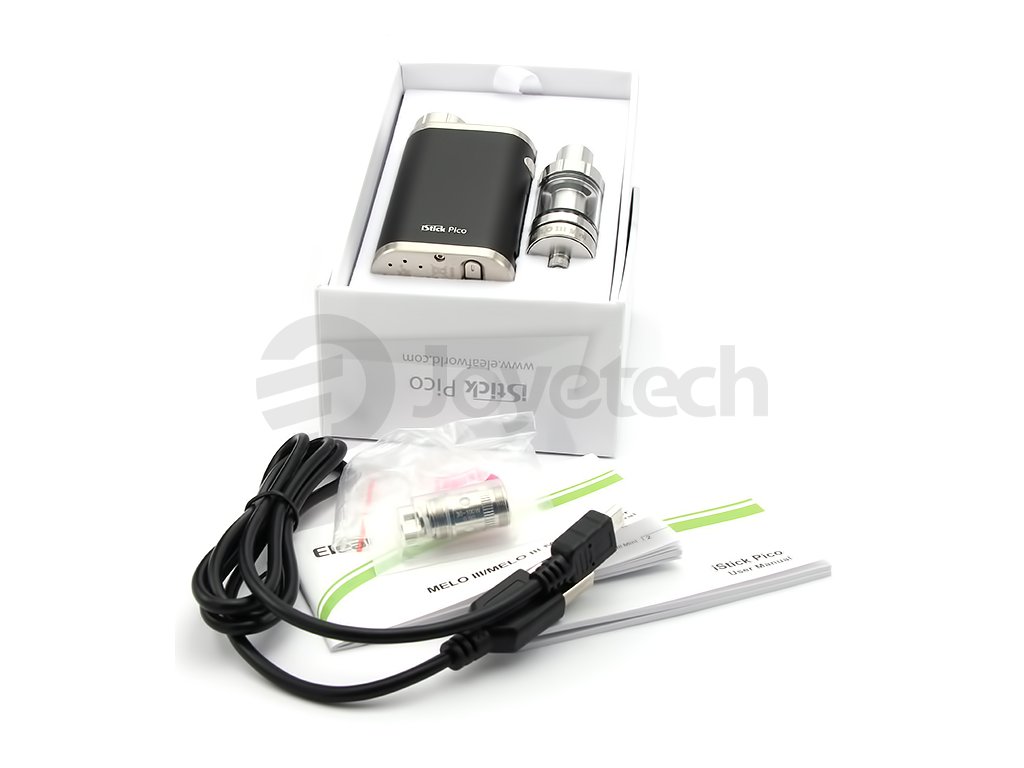 iSmoka-Eleaf Pico patří mezi menší modely iStick, avšak na jeho funkcích a dovednostech to nemá žádný vliv. Baterie zde není vestavěná, ale tvoří jí vyměnitelný monočlánek 18650, což při jeho malém vzrůstu (70,5x45x23mm) je naprostá bomba. Regulovatelný výkon nabízí hodnoty 1W až 75W s manuálním přepínáním a automatickou detekcí odporu clearomizeru (podpora atomizerů s odporem již od 0,05ohm). Jak už jeho název napovídá, najdeme zde funkci nastavování teploty, jejímž výsledkem je lepší podání chuti, spotřeba liquidu a výdrž baterie (teplotu lze nastavit libovolně od 100°C - 315°C). Pico nabízí režim VW/ TC-Ni / TC-Ti / Bypass/ TC-SS a TCR. Režim TC-SS je vhodný pro atomizery s odporovým nerezovým drátem. Režim TCR Vám automaticky detekuje materiál atomizeru a vy si manuálně nastavíte vyhovující teplotu. Nabíjení umožňuje micro USB vstup a na OLED displeji můžete sledovat stav nabití Vašeho gripu, nastavený výkon, odpor atomizeru a aktuální teplotu. Grip je vybaven funkcí passtrough, můžete tedy vapovat při zdroji USB (např. u PC) a grip zůstane nabitý na Vaše cesty. Grip je vybaven 510 závitem. Pro tento grip byl navržen i nový clearomizer a to Melo III Mini. Jako žhavicí hlavy používá již osvědčené EC a EC TC s knotem ze 100% organické bavlny = čisté podání chuti. EC používá dvě spirálky, které jsou uloženy vertikálně paralelně, čímž se zlepšuje kouřivost a podání chuti liquidu. EC TC obsahuje niklovou nebo titanovou spirálkou a možnost nastavování teploty spirálky. Objem nádržky činí 2ml. Clearomizer má regulaci přívodu vzduchu, vrchní plnění a je vyroben z nerez oceli a Pyrexu. Je plně rozebíratelný a vybaven 510 závitem. iStick nabízí možnost aktualizace firmwaru (možnost nahrání aktuální verze při její aktualizaci výrobcem).