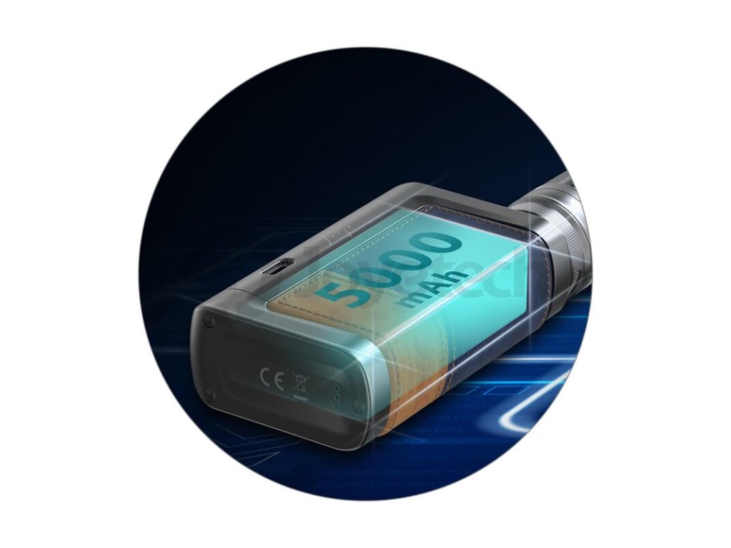 Uvnitř těla modu se nachází obrovská integrovaná baterie s kapacitou 5000 mAh. Tato vysokokapacitní baterie je uzpůsobena intenzivnímu používání a nabídne také efektivně rychlý náběh žhavení a perfektní výsledky při vapování.