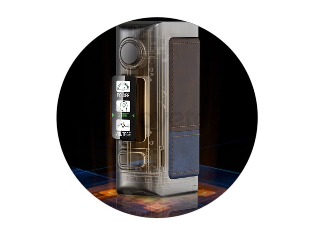 Nezbytnou součástí vybavení elektronického modu je také čip. V tomto případě najdete v modu čip Avatar pro optimální výsledky při vapování. Čip umožňuje výběr jednoho ze tří výstupních režimů. K dispozici je režim výkonu, režim variabilního výstupního napětí a režim Smart, který automaticky rozpozná připojené tělísko a nastaví doporučený a vhodný výkon. Celé ovládání modu je nesmírně intuitivní.