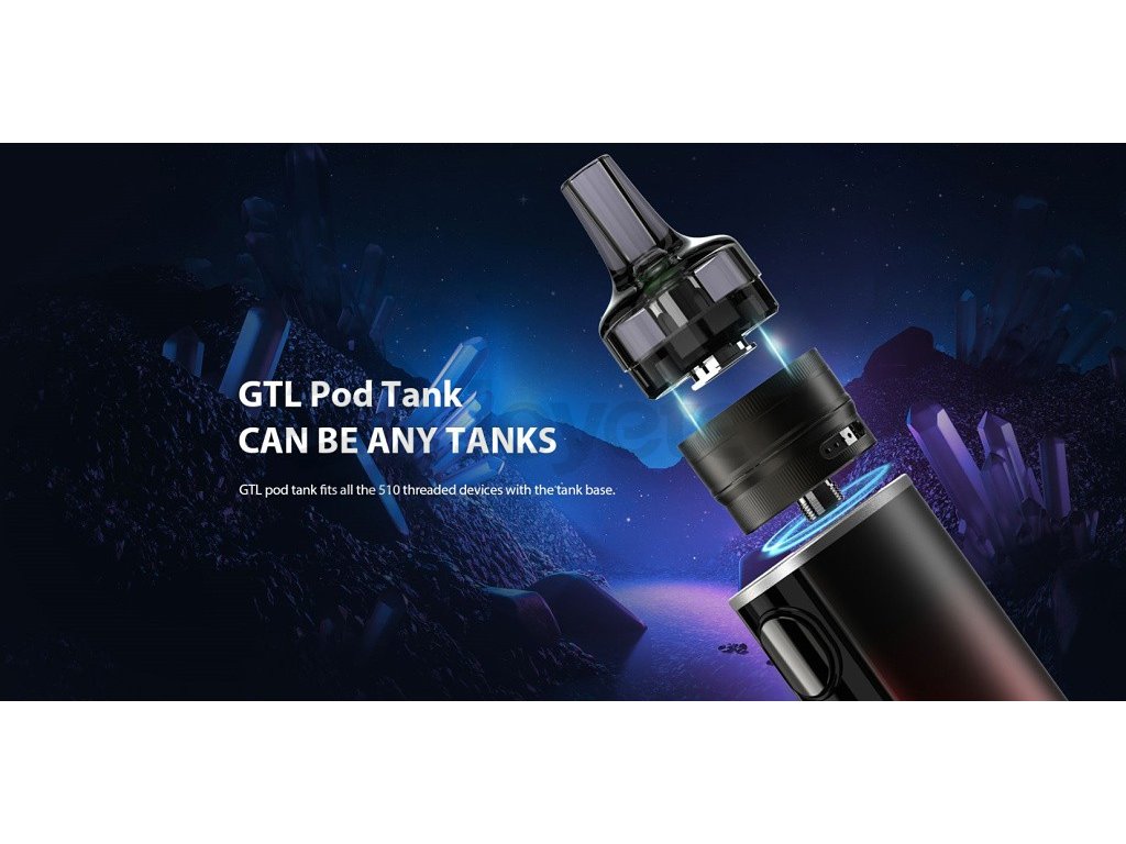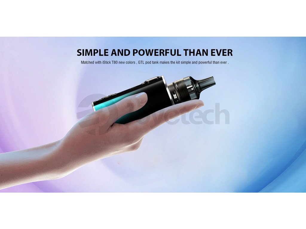 Oblíbený Eleaf iStick T80 ve zcela novém barevném provedení se zcela novým Pod Clearomizérem Eleaf GTL. Vestavěná baterie o kapacitě 3000mAh, rychlé USB-C QC3.0 nabíjení, vysoký výkon až 80W, OLED displej, ochrana proti zkratu, přehřátí, přežhavení, nízkému odporu, 10-ti vteřinová ochrana žhavení. Clearomizér GTL Pod se závitem 510, objem 4,5ml, regulace Airflow, vhodný pro DL vapování, 2x žhavící hlava Eleaf GTL v SETU. Barevné provedení Gunmetal.