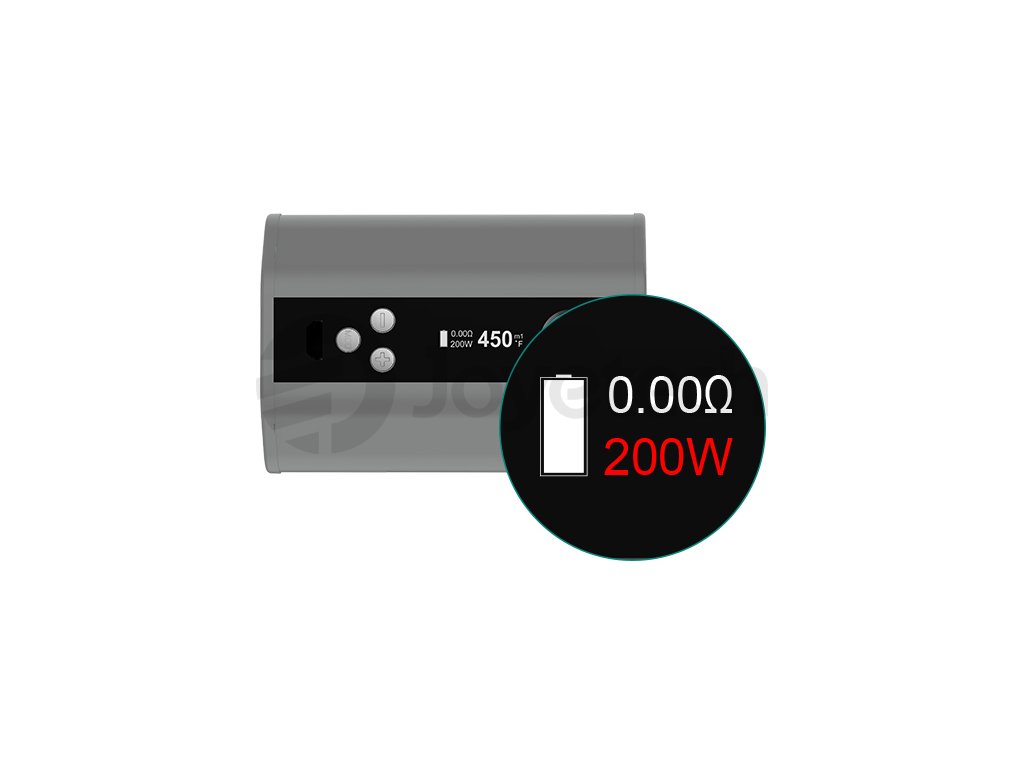 Podporovaný odpor při režimech TC-Ni / TC-Ti / TC-SS / TCR je 0.05ohm-1.5ohm a při režimech VW 0.1ohm-3.5ohm. OLED displej nabízí zobrazení hodnot jako stav nabití, Gripu, odporu atomizeru, aktuální výkon, teplota a napětí.