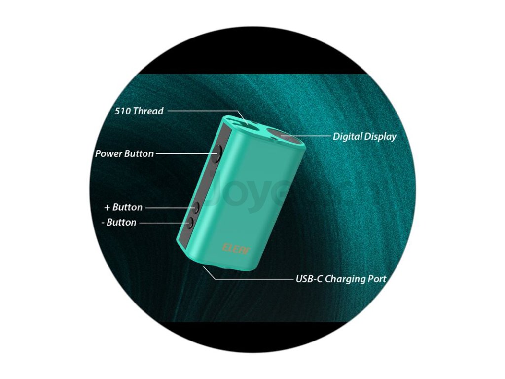 Mod dokáže zaujmout také z hlediska celkového nastavení a ovládání. Ve vrchní části se nachází praktický displej, který zobrazuje aktuální hodnotu výstupního napětí, nebo procentuální stav nabití baterie. Na modu lze regulovat výstupní napětí v rozsahu 2.6 - 5.0 V pomocí regulačních tlačítek na předním ovládacím panelu. Díky intuitivnímu ovládání a nastavení si budou s modem skvěle rozumět také začátečníci. Přímo vedle displeje je ve vrchní části umístěn také tradiční závit typu 510 pro osazení vlastním atomizérem. Výrobce doporučuje osazovat mod atomizéry s průměrem do 16.5 mm, mod se proto hodí zejména pro kompaktnější MTL atomizéry. Skvěle si bude rozumět například s MTL sérií atomizérů Eleaf GS a s tanky, jako je například GSTurbo, nebo GS Drive Tank. Sympatický a kompaktní společník pro každodenní vaping je v nabídce v šesti barevných variantách.