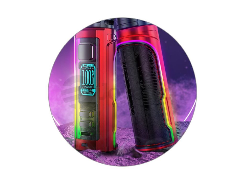 Lze používat standardní režim výkonu, nebo režim SMART pro automatické nastavení výkonu dle odporu atomizéru. K dispozici jsou pak také režimy křivky žhavení (VPC), nebo přímého výstupního napětí z baterie (Bypass). Mod disponuje také přehledným uživatelským rozhraním, na velkém displeji v přední části tak budete mít neustálý přehled o všech nastavených hodnotách. U displeje je navíc možné upravit také barvu podsvícení, na výběr máte hned pět barev. Mezi dalšími zajímavými prvky pak lze jmenovat také LED podsvícení celého modu, které lze upravit a nastavit v nespočtu různorodých variací a stylových animací. Ovládací panel v přední části modu ukrývá také praktický manuální zámek, který lze použít pro bezpečné uzamčení modu například při přenášení. Vrchní část modu je opatřena závitem typu 510, mod je kompatibilní se všemi typy atomizérů se stejným typem závitu, sami si tak můžete zvolit svůj oblíbený atomizér a využít tak funkce modu naplno. Freemax Marvos X Pro Mod je vynikající zařízení, které ocení jak pokročilí uživatelé, tak také začátečníci v oblasti gripů.