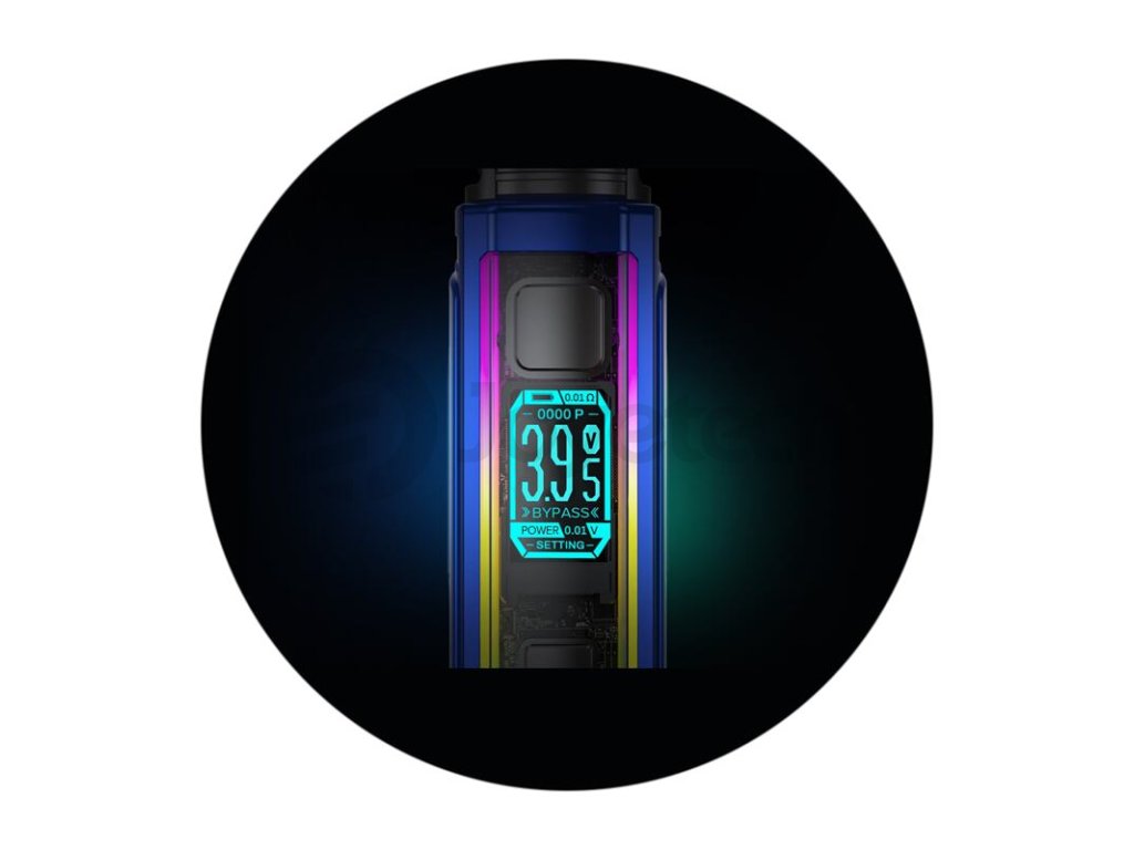 V přední části modu Marvos X Pro na vás čeká obrovský barevný displej s přehledným uživatelským rozhraním. Díky čipu FM CHIP 2.0 v těle je celkové nastavení všech parametrů a hodnot nesmírně intuitivní, rychlé a snadné. Výhodou je také možnost přepnutí barevného schématu displeje, můžete si tak vyladit celkový vzhled rozhraní přesně podle svých představ, na výběr máte hned pět barevných schémat.