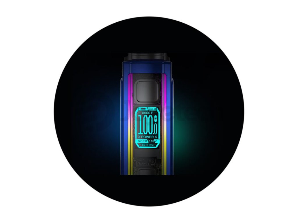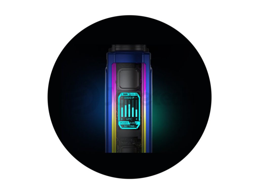 V přední části modu Marvos X Pro na vás čeká obrovský barevný displej s přehledným uživatelským rozhraním. Díky čipu FM CHIP 2.0 v těle je celkové nastavení všech parametrů a hodnot nesmírně intuitivní, rychlé a snadné. Výhodou je také možnost přepnutí barevného schématu displeje, můžete si tak vyladit celkový vzhled rozhraní přesně podle svých představ, na výběr máte hned pět barevných schémat.