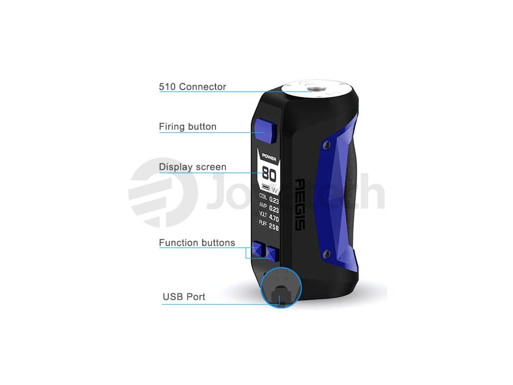 O bezpečný provoz a rychlý náběh žhavení se postará vestavěný čip AS. Tento pokročilý čip umožňuje skutečně extrémně rychlý náběh žhavení. Ten se zastavil na 9 ms. Nechybí bezpečný provoz díky řadě ochran, během nabíjení je vaše baterie chráněna proti přebití a podbití, během používání jste zase chráněni proti zkratu, nebo příliš dlouhému žhavení. Nechybí ani kontrola e-liquidu u spirálky v TC režimu. Co se týče režimů, na výběr jich je celá řada. Nechybí klasický režim výkonu, nebo teplotní režimy pro niklové, titanové a nerezové spirálky. Pokročilejší uživatelé si mohou zvolit režimy VPC, TCR a Bypass. Všechny parametry a režimy si nastavujete pohodlně pomocí velkého displeje v přední části gripu. Ikony jsou krásně čitelné a skvěle se nastavuje i na slunci. GeekVape Aegis Mini je po všech stránkách dokonalý mod, který si zasluhuje vaši pozornost.