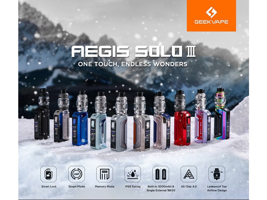 - 1x elektronický grip GeekVape Aegis Solo 3 (s integrovanou baterií 3000 mAh)