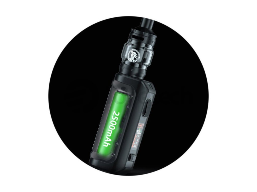 Uvnitř kompaktního těla se nachází integrovaná baterie se solidní kapacitou 2500 mAh, která si poradí s mnohahodinovým provozem i při intenzivnějším vapingu. O stavu baterie jste neustále informováni přímo na displeji v přední části. V případě nutnosti dobití vás potěší přítomnost nového portu USB-C pro rychlé dobíjení proudem až 2 A.