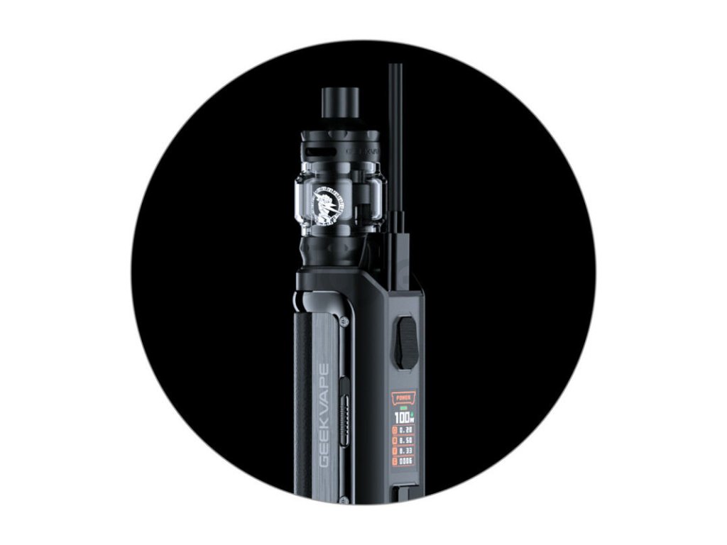 GeekVape M100 je kompaktní elektronický grip s integrovanou baterií od výrobce GeekVape. Jedná se o nástupce modelu Aegis Mini. Přináší hned několik vylepšení v čele s trojitou odolností těla vůči vnějším vlivům, vysokým výstupním výkonem a vyšší kapacitou baterie. Kvalitně zpracovaná konstrukce nabídne odolnost vůči vodě dle certifikace IP68, vůči prachu dle stejné certifikace a vůči nárazu. Rozměry sady činí 136,5 x 39,3 mm. Díky zaoblené zadní části mod perfektně padne do ruky a pohodlně se používá. Uvnitř těla se potom nachází integrovaná baterie se solidní kapacitou 2500 mAh, která se postará o pohodové používání v průběhu dne, ale také o vysoký výstupní výkon, který lze regulovat v rozmezí 5 - 100 W. Nesmí chybět ani řada bezpečnostních ochranných prvků baterie a atomizéru pro bezpečný vaping. Baterii si budete moci kdykoliv pohodlně dobít díky USB-C portu na těle.