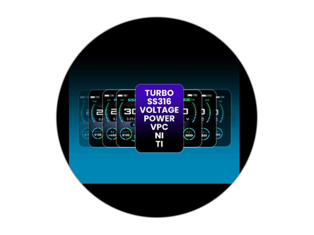 Zažijte svobodu ve vapování a zvolte si jeden ze sedmi dostupných výstupních režimů s dodatečnými subrežimy. Na modu si můžete vyzkoušet tradiční režim výkonu POWER, režim variabilního výstupního napětí VOLTAGE, režim přímého výstupního napětí TURBO, režim křivky žhavení VPC a tři teplotní režimy pro SS316, Nikl a Titan. V teplotních režimech si potom můžete dodatečně mimo teplotu upravit také výstupní výkon. V režimu POWER si zase osvěžíte intenzitu potahu díky subrežimu Boost. Možnosti jsou skutečně rozsáhlé a na své si přijdou naprosto všichni vapeři od začátečníků až po náročné DIY uživatele.