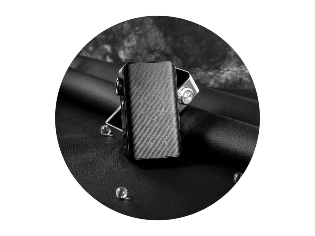 Dvířka v boční části modu ukrývají slot pro vložení dvou vlastních externích baterií. Mod pracuje s oblíbeným typem článkových baterií 18650, na výběr tak máte z celé řady různorodých variant kapacity a vybíjecího proudu. Díky slotu pro vlastní externí baterie si snadno zvolíte přesně takové baterie, které vám budou vyhovovat, abyste z modu získali maximální potenciál.