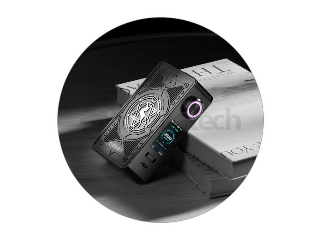 Lost Vape Centaurus M200 Mod je ukázkou precizního inženýrství a vkusu výrobce Lost Vape. Těšit se můžete na krásně zpracované tělo v tradičním box mod designu o rozměrech 93 x 56.7 x 26 mm. Celé tělo je vyrobeno z lehoučké a kvalitní hliníkové slitiny, kterou doprovází prvky z nerezové oceli. Boční panel potom zdobí logo celé série Centaurus, které přináší ještě futurističtější vzhled celého modu.