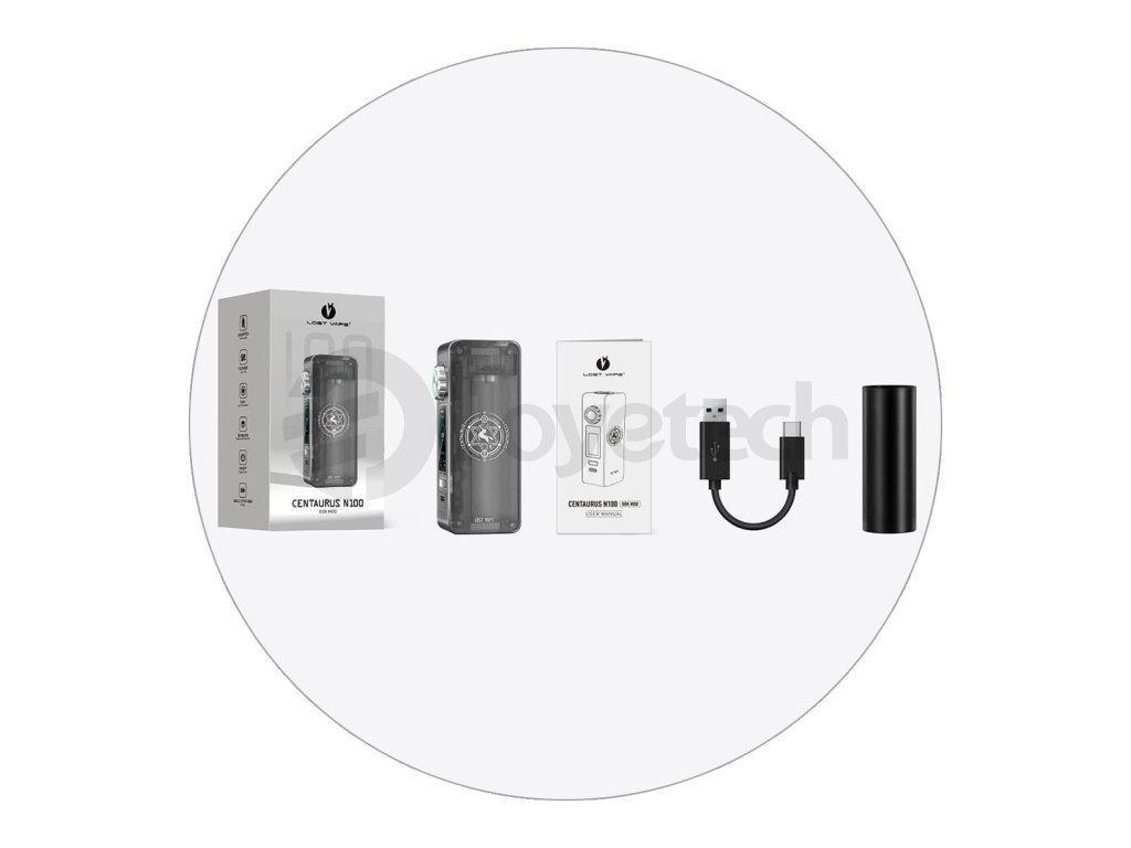 Lost Vape Centaurus N100 Mod je praktický jednobaterkový grip kombinující jedinečný styl a prvotřídní funkce díky osvědčenému čipsetu Quest 2.0. Semitransparentní konstrukce z kombinace polykarbonátu, zinkové slitiny a nerezové oceli působí futuristickým a elegantním dojmem, mod se navíc snadno užívá díky inovativnímu tlačítku s otočným kolečkem a funkcí 4v1. Díky podpoře bateriových článků 21700 nebo 18650 dodá perfektní výsledky a postará se o strhující výkon až 100 W. Se závitem 510 v horní části si potom poradí libovolný atomizér se stejným typem uchycení. Ať jste milovníky DIY vapingu nebo preferujete klasické tovární hlavy, mod si jednoduše osadíte vlastním atomizérem se závitem 510 a můžete se pustit do vapování a vychutnat si veškeré kvality kompaktního modu N100.