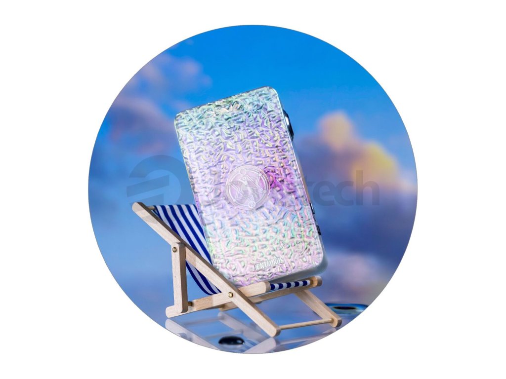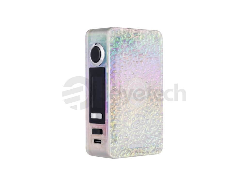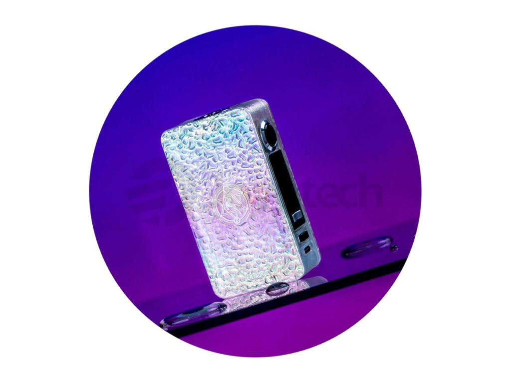 Boční panel modu ukrývá slot pro vložení dvou externích baterií typu 18650. Díky pohonu na dvě baterie si dokáže mod poradit s ohromujícím výkonem a zároveň dodat vždy skvělé a co nejoptimálnější výsledky při vapování. Samozřejmostí je také praktická podpora nabíjení baterií přímo v modu. Tělo modu je vybaveno portem USB-C a mod podporuje nabíjení 2A.