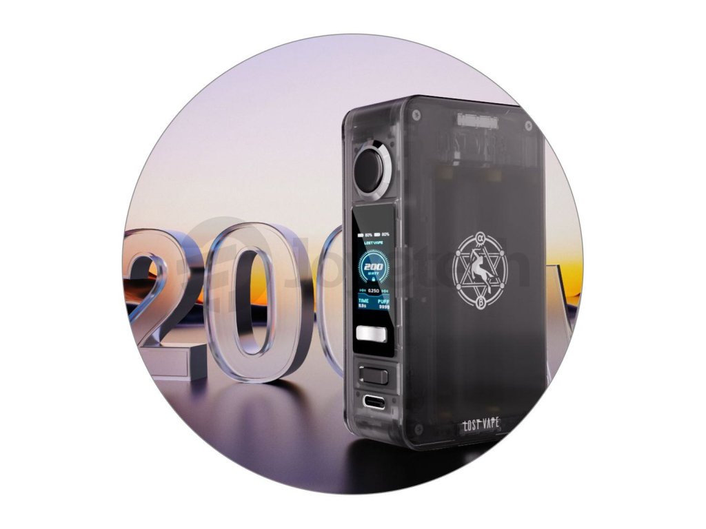 Mod inspirovaný barvami a odstíny přírodního charakteru s krásným semitransparentním tělem a přívětivými rozměry, to je ve zkratce Lost Vape Centaurus N200 Mod. Díky slotu na dvě externí baterie 18650 si dokáže poradit s ohromujícím výkonem až 200W a nabídne plnohodnotný zážitek i těm nejnáročnějším vaperům. Stejně jako jeho jednobaterkový sourozenec N100 je i tento mod opatřen čipsetem Quest 2.0 se dvěma režimy výstupu, rychlým náběhem žhavení, precizními výsledky při vapování a řadou bezpečnostních ochran. O hladké ovládání se postará přehledný panel s multifunkčním tlačítkem, regulačními klávesami, manuálním vypínačem a barevným TFT displejem. Lost Vape Centaurus N200 je ukázkou elegance, stylu a praktičnosti v jednom jediném těle.