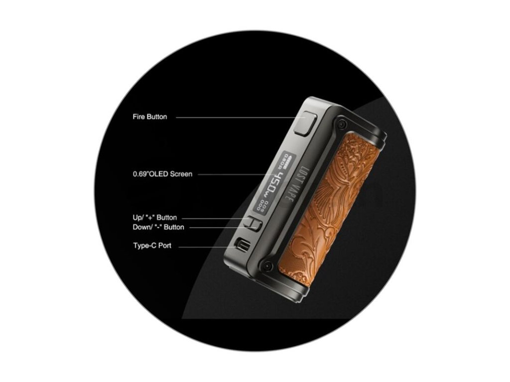 Mod Thelema Mini pokračuje v zaběhnuté tradici výrobce Lost Vape, který si u všech svých zařízení potrpí na překrásné designové zpracování. Můžete se tak těšit na kvalitní kovovou konstrukci modu vyrobenou z kombinace zinkové slitiny a nerezové oceli, kterou doprovází stylový potah zadního panelu z kůže, či karbonu. Už na první pohled budí mod dojem luxusu, jako tomu bývá zvykem i u dalších gripů tohoto renomovaného výrobce.