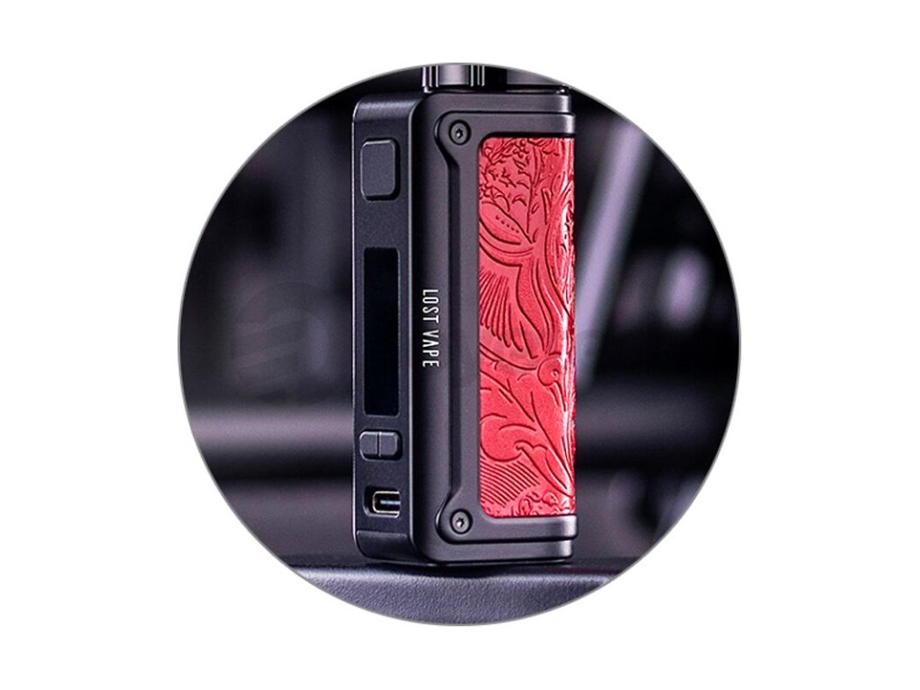 Mod Thelema Mini pokračuje v zaběhnuté tradici výrobce Lost Vape, který si u všech svých zařízení potrpí na překrásné designové zpracování. Můžete se tak těšit na kvalitní kovovou konstrukci modu vyrobenou z kombinace zinkové slitiny a nerezové oceli, kterou doprovází stylový potah zadního panelu z kůže, či karbonu. Už na první pohled budí mod dojem luxusu, jako tomu bývá zvykem i u dalších gripů tohoto renomovaného výrobce.